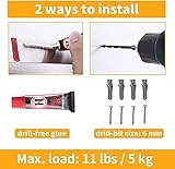 KES - Large space 236l x 287w x 26h A compact size rack but yet provides huge storage space Features a railing across to the rack to hold up the items and prevent them from falling Its designed for modern houses and contemporary hotels to hang and organize your spice condiments and many other household items in order 2 ways to install use included drillfree strong glue to install this spice rack quick and easy mounting no drill holes needed no damage to the wall You can also choose screwmounting installation with stainless steel screws and anchors in the package All screws come with decorative caps