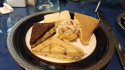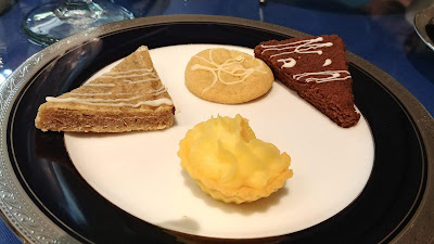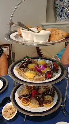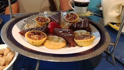 We all were disappointed in the Apple Spice Cake because it was too heavy on the cloves.My favorite was the Amaretto Brownie. SP liked the Lemon Torte. The scones with jam & cream were good, too. I love clotted cream!